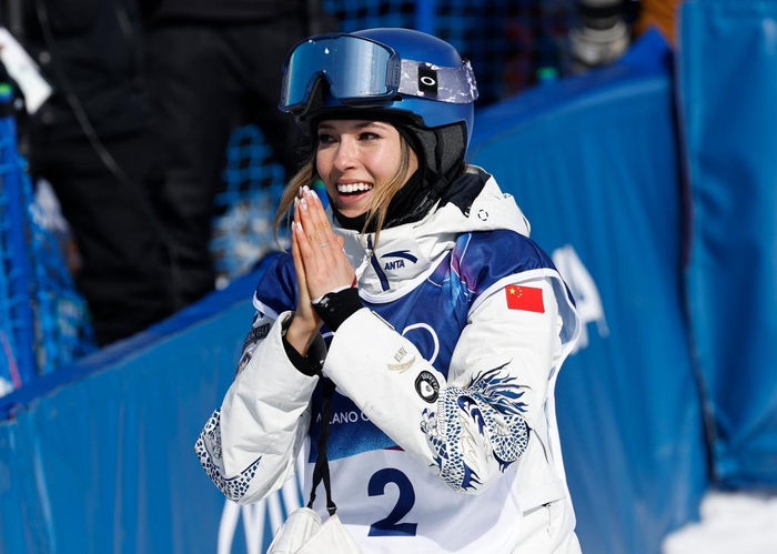 在22日的自由式滑雪女子U型场地技能决赛中,谷爱凌那件使人冷艳的角逐服再现赛场。